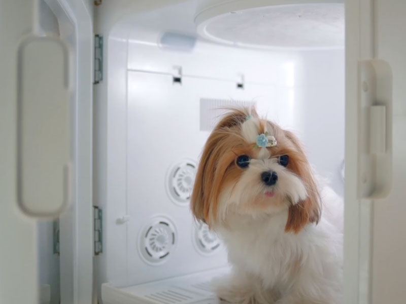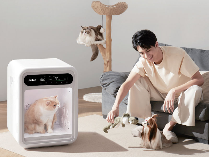 手持ちのドライヤーで追いかけながら乾かすと、お互いに汗だくになってしまいがち。 Jirpet F1を使えば、うちの子はボックスの中でゆったり。飼い主さんは、そばで見守りながら別の家事を進めることもできます。