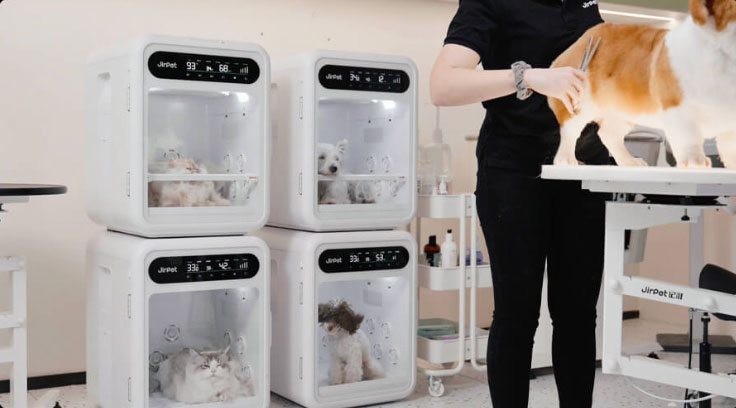 Jirpet F1は、特許取得の360度送風×オゾン除菌×43dB超静音でペットの乾燥作業を根本から変える、今注目の業務用ペットドライヤーです。